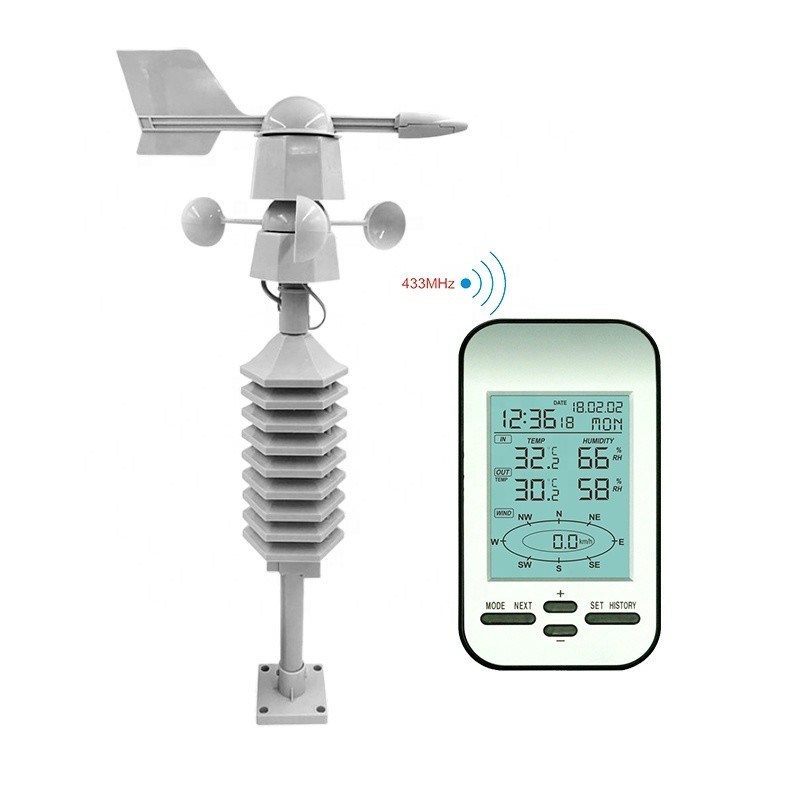 Беспроводная метеорологическая станция для отслеживания температуры, влажности, скорости и направления ветра 6
